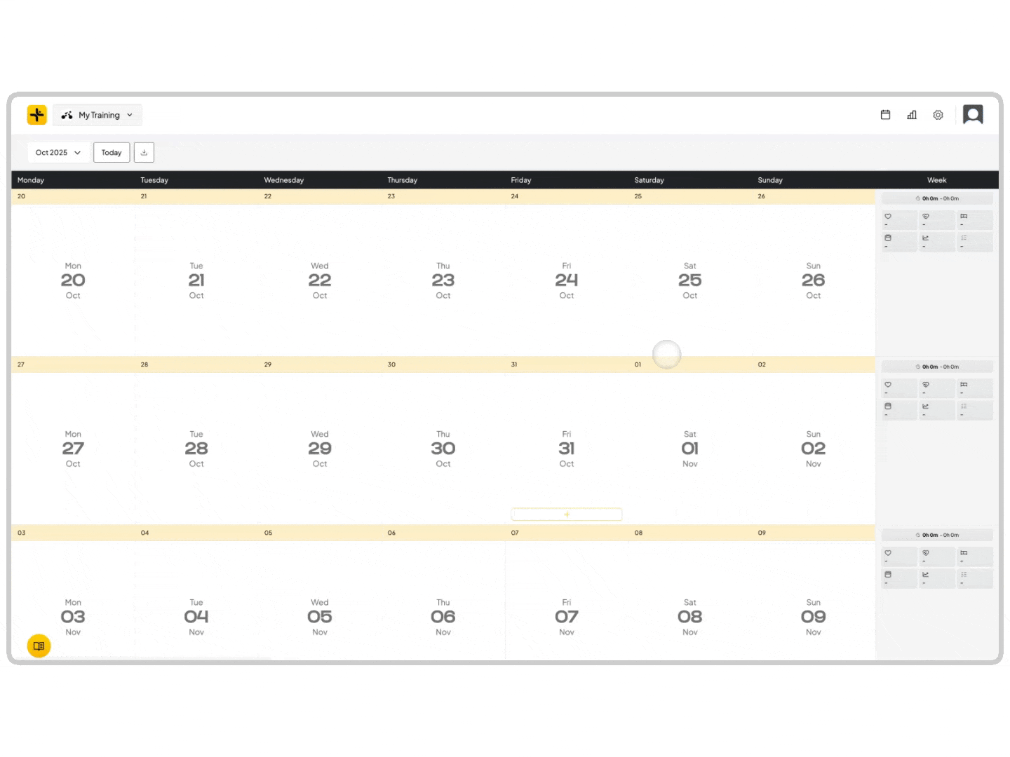 The Athlete Calendar gives you a detailed view of each athlete. It unifies sessions, performance data, wellness metrics, athlete feedback, and events into a single view.
