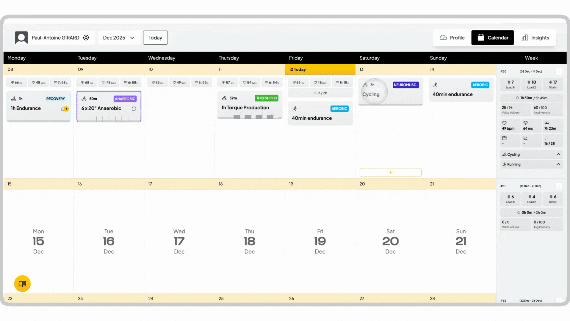 Preview the expected demands of a prescribed workout by clicking into the Workout from your Calendar.
